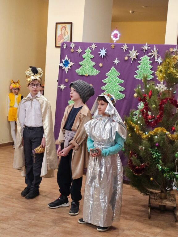 Мы долго готовились к нему, учили рождественские песнопения, репетировали, оформляли «сцену». Родители рисовали декорации, шили костюмы, готовили сладкий стол.